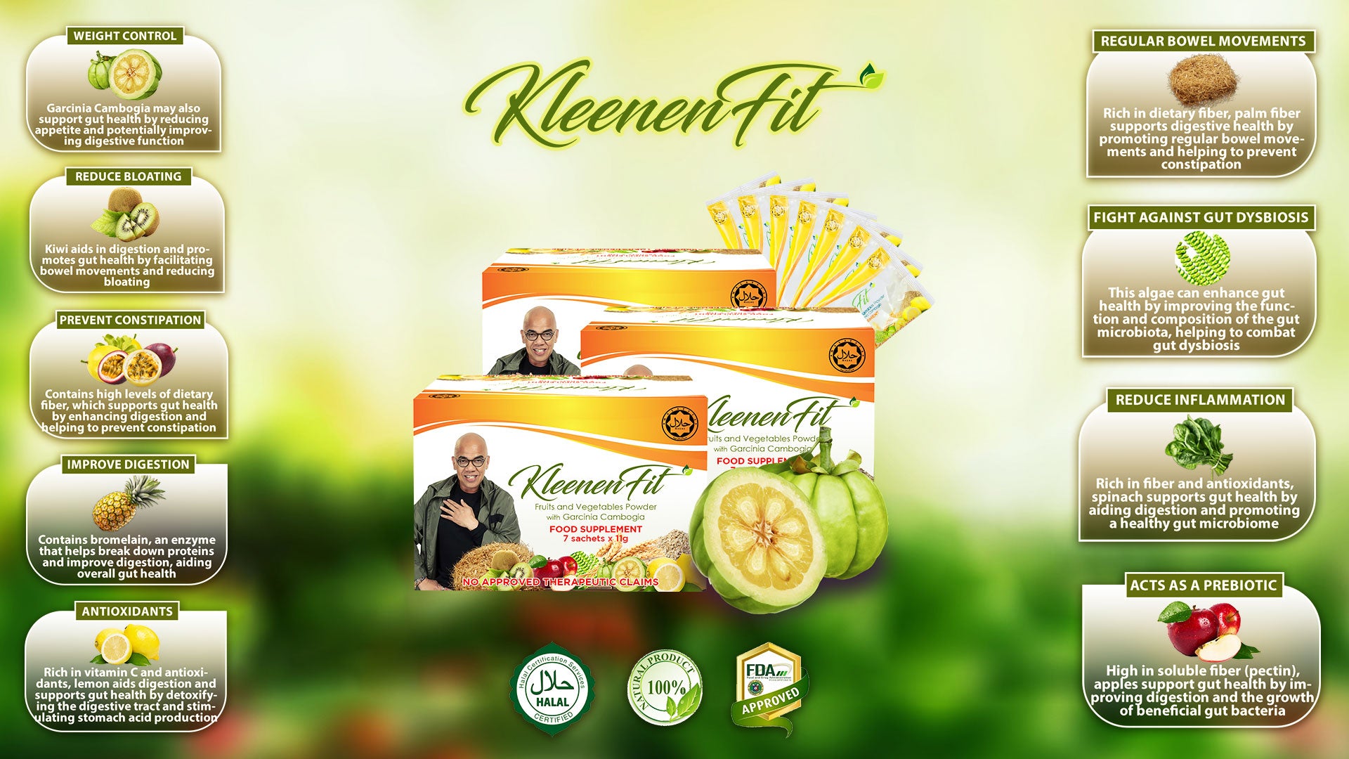 Movements with an all-organic plant fibers, Kleenenfit boosts digestion and stool motility which help ease constipation and bloating.